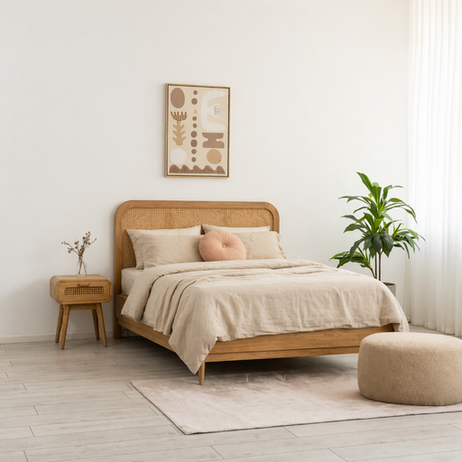 שידה צד מיטה מעץ שיטה מלא דגם AMSTERDAM