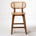 כסא בר מעץ טיק, אלגנטי בעבודת יד, עשוי עץ טיק מלא בשילוב מושב ראטן טבעי קלוע.
