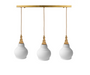 גוף תאורה משולב פס מתכת עם שלוש זכוכיות לבנות על כבל לתלייה מהתקרה.