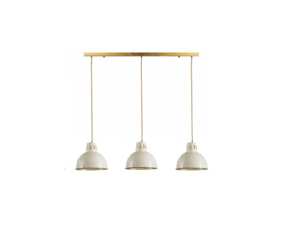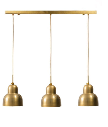 גוף תאורה משולב פס מתכת עם שלוש כובעי נחושת על כבל לתלייה מהתקרה.מידות:רוחב - 70 ס"מגובה - 80 ס"מקוטר - 14 ס"מפס נחושת - 70 ס"מ פרטים טכניים:ארץ יי...