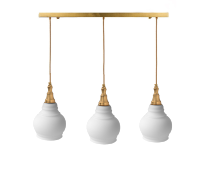 גוף תאורה משולב פס מתכת עם שלוש זכוכיות לבנות על כבל לתלייה מהתקרה.מידות:קוטר - 24 ס"מגובה - 110 ס"מפס נחושת - 100 ס"מ פרטים טכניים:ארץ ייצור - ישר...