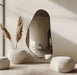 מראה אסמטרית עם מסגרת מתכת דקה שחורה משתלבת בצורה מושלמת בכל חדר בבית שלכם