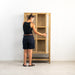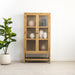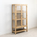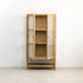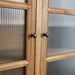 ארון דגם סינגפור כפול - עשוי עץ אלון אסייתי בשילוב דלתות מזכוכית פסים וידיות פליז שחור , בנוסף קיים מדף פסים פתוח לאחסון .