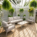 סט גינה מעוצב הכולל ספה תלת-מושבית, שתי כורסאות יחיד ושולחן קפה תואם.