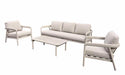 הסט בעל מסגרת אלומניום חזקה ועמידה המתאימה לשימוש חיצוני, עם כריות מרופדות בד רחיץ ועמיד, שמעניקות חוויית ישיבה מפנקת.