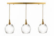 גוף תאורה משולב פס מתכת עם שלוש זכוכיות מעוגלות על כבל לתלייה מהתקרה.