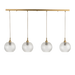 גוף תאורה משולב פס מתכת עם ארבע כובעי זכוכיות על כבל לתלייה מהתקרה.