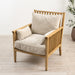 כורסא מעוצבת דגם מורי , עשויה עץ אלון אסייתי בשילוב בד קטיפה בצבע אבן- מגיעה עם שתי כריות נוי צדדיות