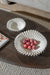 קערה מעצבת בצבע לבן. קערת הגשה מפוסלת קפלים צפופים בגימור שייני.