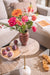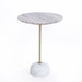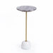 שולחן שיש עגול בגוון גרדיאנט שחור- לבן. שולחן מעוצב פלטת שיש עגולה הנישאת על עמוד מוזהב דק ובסיס שיש עגול. שולחן צד מרהיב ב-קו סקיני ייחודי.